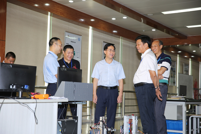 調研(yán)組參觀機電工(gōng)程(chéng)實訓基(jī)地機器人(rén)操(cāo)作實訓室