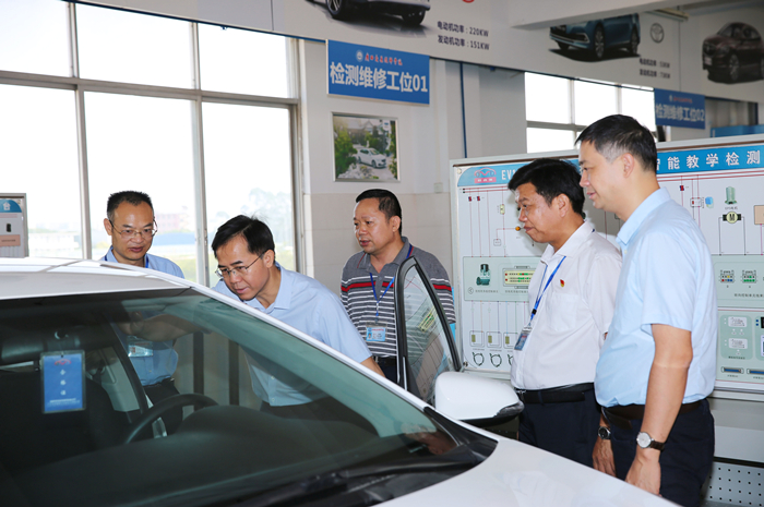 調研組(zǔ)一行參(cān)觀我院汽(qì)車維修實訓設備(bèi)