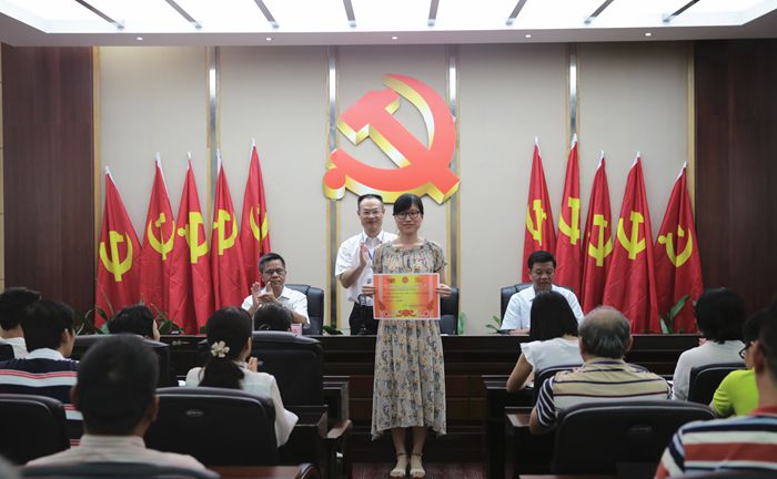 優秀黨(dǎng)務工作者上台領獎(jiǎng)