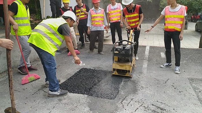 我院交通工程係開展瀝(lì)青路麵坑槽修補實訓聯合教學
