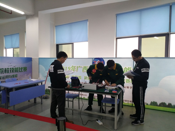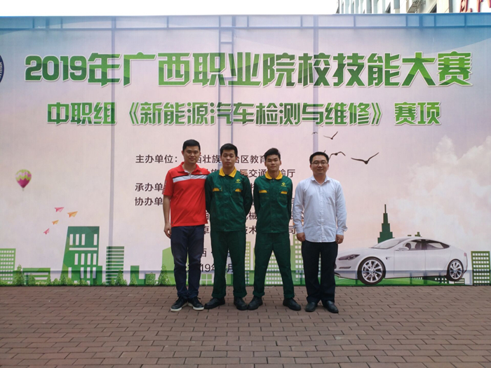 新能源汽(qì)車檢測與維修項目於3月24日(rì)-25日在廣西(xī)交通(tōng)運輸學(xué)校(xiào)舉行,參加新能源汽車檢測與維修賽項的共有來自全區的44支代(dài)表隊(duì),我院汽(qì)車工(gōng)程係學生薛華傑、楊(yáng)周龍參加了本次比賽。