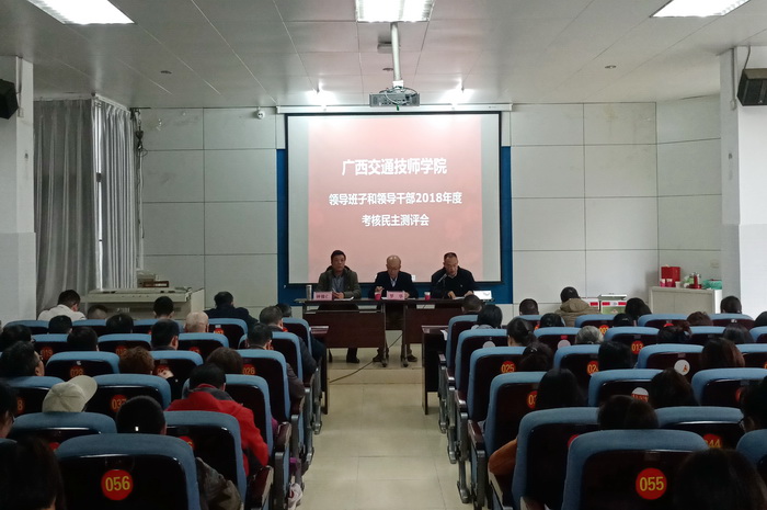 根(gēn)據上(shàng)級工作部署,2019年2月27日下午,我院在階梯教室召開領導班子和領導幹部2018年度民主測評會。學院領導班子及全體(tǐ)在編在(zài)職人員參(cān)加會議,自治區道路運(yùn)輸管理局黨委書記羅華、人事科科長鍾邱蒞臨指導。