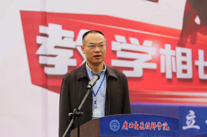 陸天雲副院長在開幕式上致(zhì)詞。他(tā)首先對籌備此次運動會的工作人員、參加大會的運動(dòng)員和裁判員表示衷心感謝。陸天雲副院長表示,近一年以來,我院取得了令人矚目的重大成就和榮譽:2017年學院經自治區區直工委推(tuī)薦,經過層層選(xuǎn)拔脫穎而出,被(bèi)中央精(jīng)神文明建設指導委員會(huì)授予首屆“全國文(wén)明(míng)校園”稱號,是全國唯一(yī)獲得此項榮譽的的技工院校;2018年8月,學院因良好的辦學條件,優異的競(jìng)技成績,被國家(jiā)人力資源和社會保障部確定為“第45屆世界技能大賽汽車噴漆項目中國集訓基地”,實現了廣西世界技能大(dà)賽中國(guó)集訓基地零的突(tū)破。他希望全體師生員工(gōng)在緊張的工作、學習之餘,積極參加體育鍛煉,增強體魄,讓自覺參加體育鍛煉成為大家的(de)良好習慣,掀起我院師生(shēng)員工健身的新高潮,開創我院體育工作(zuò)的新局麵。