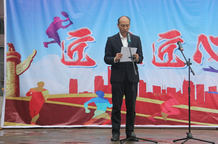 學院黨委書記古雅明在長堽校(xiào)區宣布運動會開幕