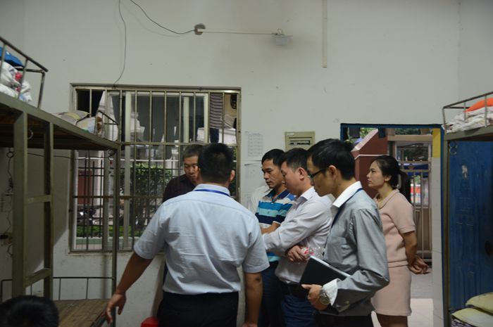 在學生工作科方華傑副科長的帶領下參觀(guān)學生宿舍