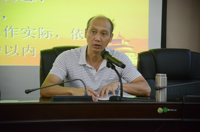 鍾修仁院(yuàn)長強調,要在全院師生中廣泛(fàn)開展法律(lǜ)法規(guī)學習,掀起學法用法高潮,不斷提高(gāo)全院師生的(de)法律意識和法製觀念(niàn),全麵落實依法治國要求(qiú),大力(lì)推進依法治校,加(jiā)快建(jiàn)設現代學校製度。首(shǒu)先要牢固樹立依法治校的理念。其(qí)次要完善製度保障,強(qiáng)化監督管理。第三要狠抓作風建設,貫徹執行《黨風廉政建設和反腐敗工作要點》,落實“兩個責任”。第四,依法健全校內糾紛解(jiě)決機製(zhì),積極建設民主校園、和諧校園、平(píng)安校園、文明校園。