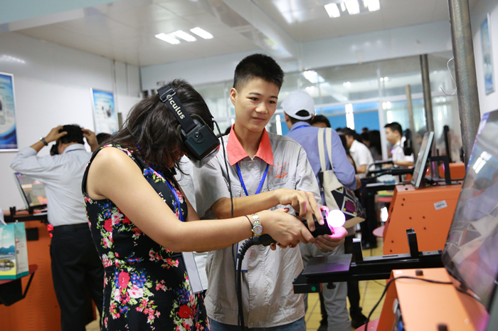 考察團成員體驗模擬焊接