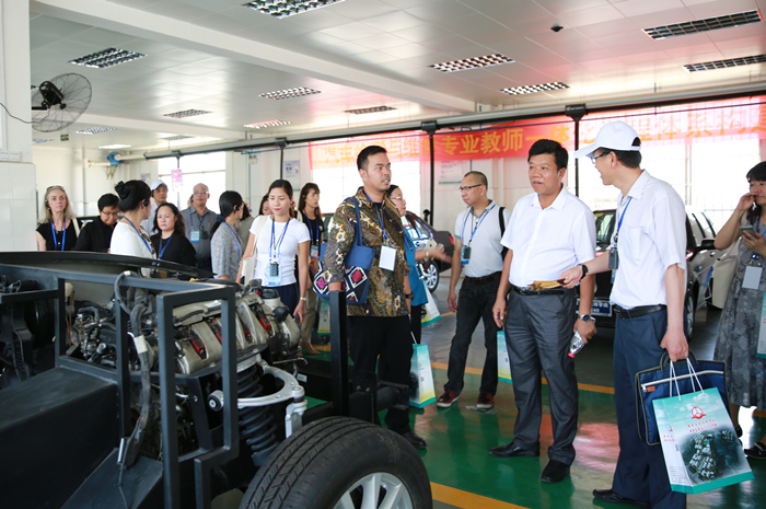 考察團一行先後參觀(guān)了學院汽車4S店營銷中心,汽車維(wéi)修實訓中心,物流實(shí)訓中心,鈑金(jīn)實訓中心,玉柴裝配實訓中心,一(yī)體化教學基地,保時捷汽車噴塗實訓中心,大師(shī)工作室等實訓教學場所,濃厚的企業文化(huà)氛圍、厚重的職業文(wén)化氣息、現代化的教學實訓教(jiāo)學條件、先進的職業(yè)教育教學理念,給考察團留下了深刻的印象。
