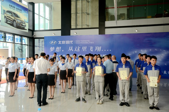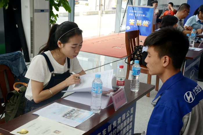 6月7日,我院2017年北京現代班校園專場(chǎng)招聘會在學院(yuàn)汽車4S展廳拉開帷幕,學院2016級北京現代機(jī)修班和服(fú)務營銷班共(gòng)39名(míng)畢(bì)業生參加了(le)此次招聘會,並且全都應聘成功,順利簽訂實習崗位。