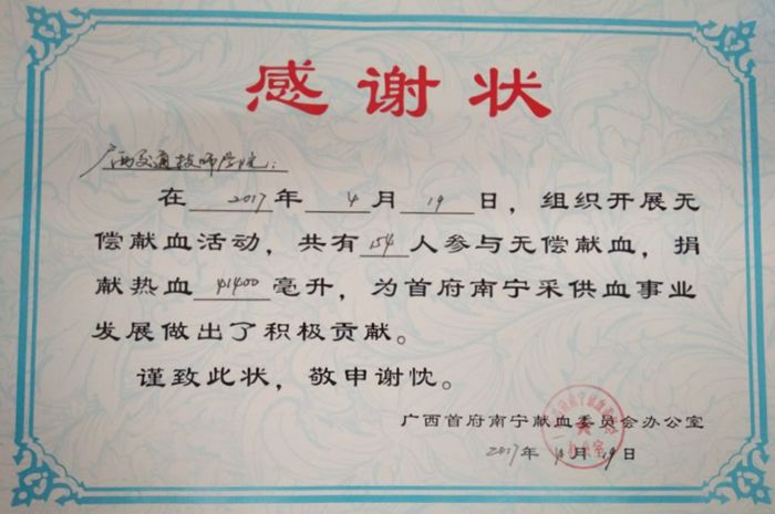 活動結(jié)束後(hòu),血站的醫務人(rén)員紛(fēn)紛表示他們對這天的無償獻血工作非常滿意,學校各部門配合得很好,服務非常(cháng)到位;學生的獻血熱情十分高漲,表現出了可嘉的勇氣和極高的素質。