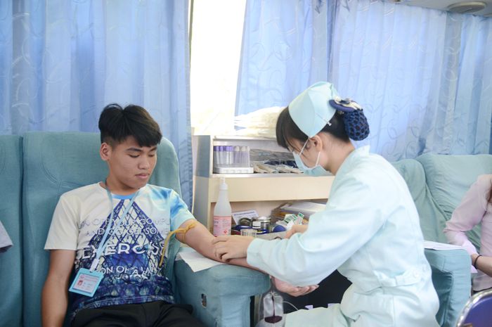 活動期間,前來獻(xiàn)血的師生絡繹不絕,現場(chǎng)一片愛心湧動。在領取獻(xiàn)血表處,獻(xiàn)血者們井然有(yǒu)序地排著隊,誌願者們積極為(wéi)參加獻血的同學發放獻血登記表,講解獻(xiàn)血須(xū)知;在體檢處,為了確保同學們安全(quán)獻血,醫護人員會在獻血前給每(měi)一位獻(xiàn)血者進(jìn)行嚴格(gé)的(de)體(tǐ)檢;在(zài)獻(xiàn)血車上,正坐著的(de)幾位剛剛抽(chōu)過血(xuè)的同學,他們表(biǎo)情自如,談笑風生,臉上都洋溢著一份獻血光榮(róng)的驕傲神情。整個活動(dòng)現場充滿了關愛、熱烈而有序的氛圍。