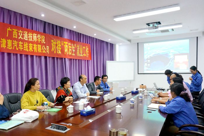 4月12日,在我院副院長關菲明的帶領下,院長助理鄭超文、招生(shēng)就業處副主任覃甫等一行6人前(qián)往廣東省惠州市津惠汽車線束有限公司(sī),並與該公司總經理何世紅、董事長周寶明、副總經理馮仕華等領導就“兩後生(shēng)”的就業問題展開了深入交流。