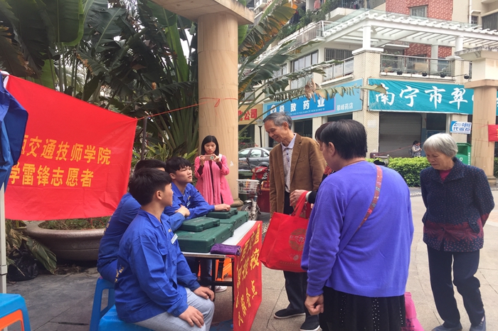走進三月,學習雷鋒。3月21日上午9點,翠峰社區在振寧翠峰小區羅馬廣場(chǎng)開展了“學雷(léi)鋒”便民活動。我院汽車維修協會的(de)同學們參加了此次服務活動。