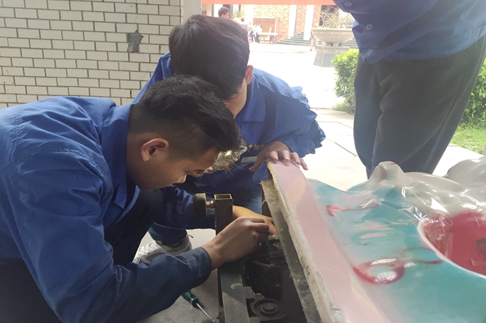 學生為小(xiǎo)區商家修理(lǐ)電動搖搖車(chē)