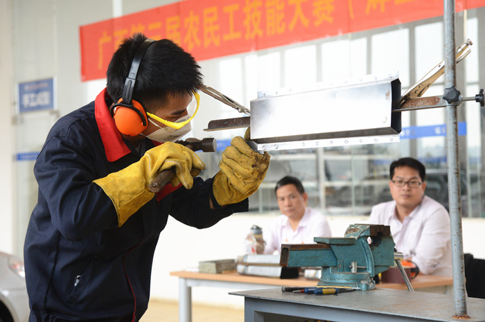 參加選拔的7名學生經(jīng)過學院2016年校園技能節的層層選拔,從129參賽選手中脫穎而出,然而在此次“7進4”選拔賽中(zhōng),標準更高、要求更嚴,更嚴地考(kǎo)驗了7名參賽選手的專業技術和心理素質。經過緊(jǐn)張激(jī)烈的“板件更換(huàn)”和“門(mén)板修複”兩大環節,最終2014級鈑高3班的秦家旺、秦誌海(hǎi)、黃佳金以(yǐ)及2015鈑中2班黃良基等4名學生入選(xuǎn)。他們將在指導教師的安排下(xià),投入到新一輪的緊張訓練(liàn)當(dāng)中,力求以最佳的(de)精神狀態(tài)和(hé)持(chí)久(jiǔ)的備戰熱情,迎接2017年廣西中職技能大賽汽車車身修(xiū)複(鈑金)技術項目比賽。