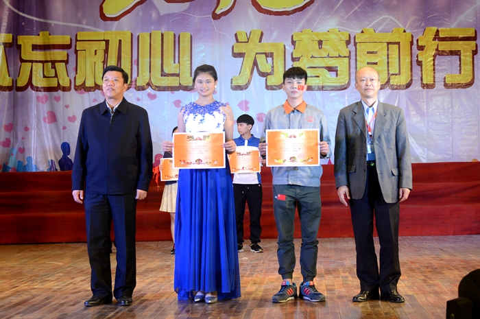 院長鍾修仁和黨委書記(jì)羅華給一等獎獲得班(bān)級頒獎