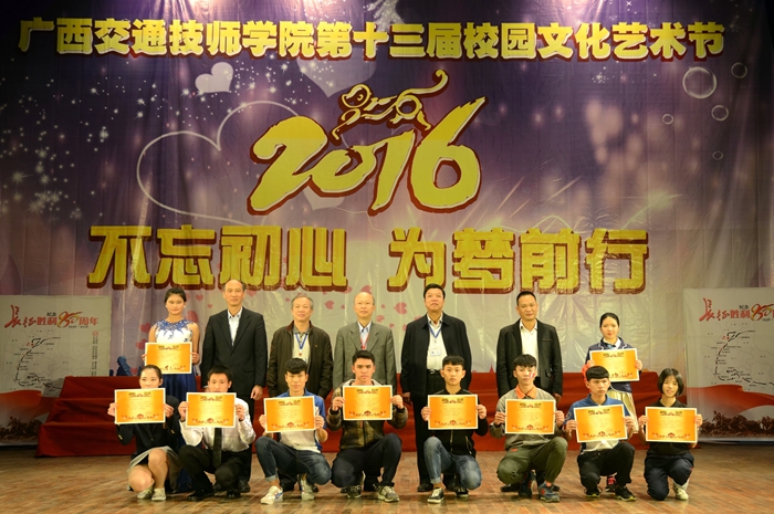 為深入貫徹(chè)落實習近平總書記在(zài)慶祝中國共產黨成立95周年大(dà)會上的(de)重要講話精(jīng)神,推進我院校園文化建(jiàn)設,提升教職工和青年學生藝術(shù)素養,強化廣大師生的政治理想信(xìn)念,加強我院(yuàn)嚴(yán)謹、求(qiú)實、勤奮、文明的國家級示範性(xìng)技師學院建設,我院於11月至12月舉(jǔ)辦“不忘初心 為夢前行”第十三屆校園文化藝術節。本屆藝術節共有九個活動項目(mù),分(fèn)別是(shì)學生合唱比賽、學生卡拉ok比賽、學生《弟子規》朗(lǎng)誦競賽、學生書畫攝影小(xiǎo)視頻比賽、學生(shēng)團支部專場(chǎng)比賽、學生舞蹈、曲藝比賽、學生“電視主持人挑戰賽”、教職工書畫攝影展以及元旦綜合(hé)文藝晚會。