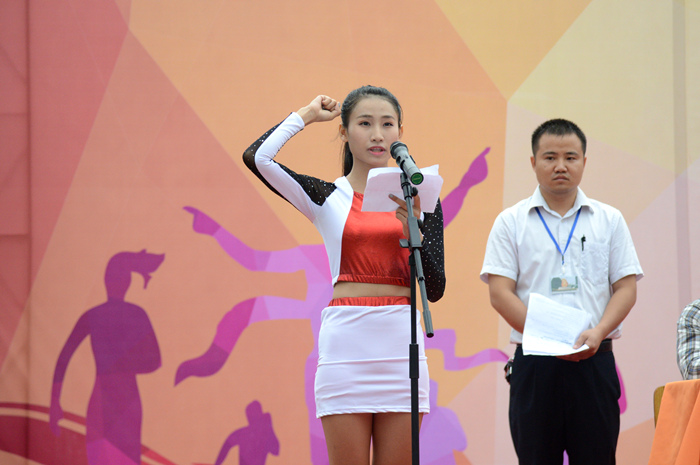 伴隨著鏗鏘雄壯的進(jìn)行曲,國旗護衛隊昂首(shǒu)跨入會場,紅旗隊、鮮(xiān)花隊、裁判員方隊等(děng)邁著整齊的步伐依次走過主席台。隨(suí)後,舉(jǔ)行了莊嚴的升旗儀式。