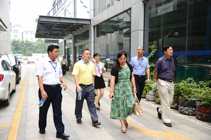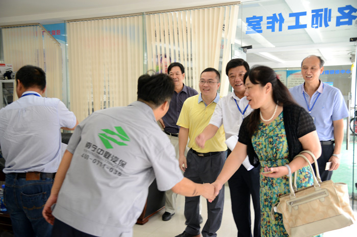 我(wǒ)院領導(dǎo)陪(péi)同自治區人社廳職業能力建設處處長楊春華(中)、副處長覃朝俊(左二)、高級講師陳(chén)振成(右一)參觀(guān)考察