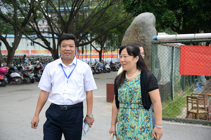 自治區人社廳職業能力建(jiàn)設處處長楊春(chūn)華我院院長鍾修仁(rén)親切交談