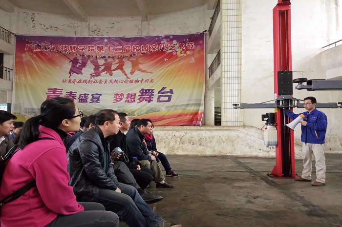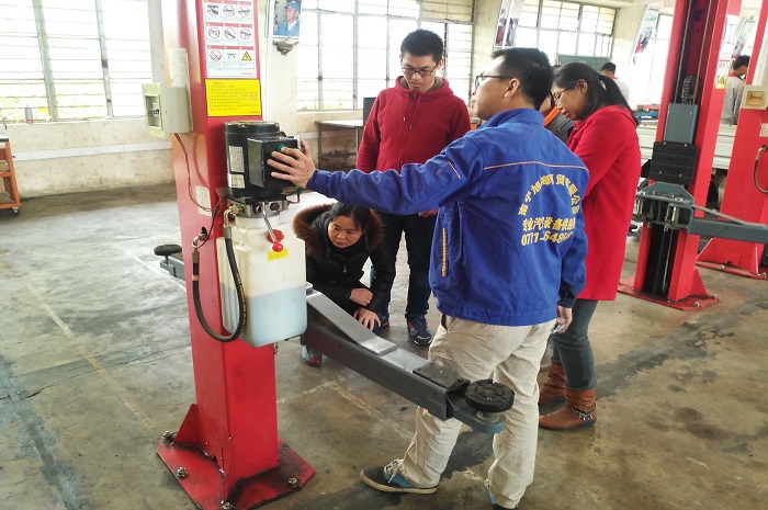 堅持“安全第一、預防為主”是我院教學過程中必須貫徹的方針。近日,學院高峰(fēng)校區針對舉(jǔ)升機在實習教學中使用頻率高(gāo),安全責任大的特點,大力拓(tuò)寬(kuān)安(ān)全知識宣傳教育渠道,邀請了專業汽保設備供應商,南寧旭海商貿有限公司(sī)技術人員到校區講解有關舉升機的安全操作要(yào)領和保養注意事項。校區汽車(chē)係各相關教師及設備管理員等人參加了此次培訓。
