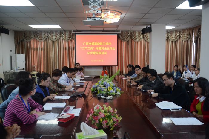 為廣泛(fàn)聽(tīng)取黨員(yuán)、幹部、群眾意見建議,2016年(nián)1月5日,“三嚴三(sān)實”專題民主生活會征求意見座談會在辦公樓二樓會(huì)議室召開,中層幹(gàn)部、專職(zhí)教(jiāo)師、行政後勤以及學生代(dài)表共31人參加了此次座(zuò)談會。