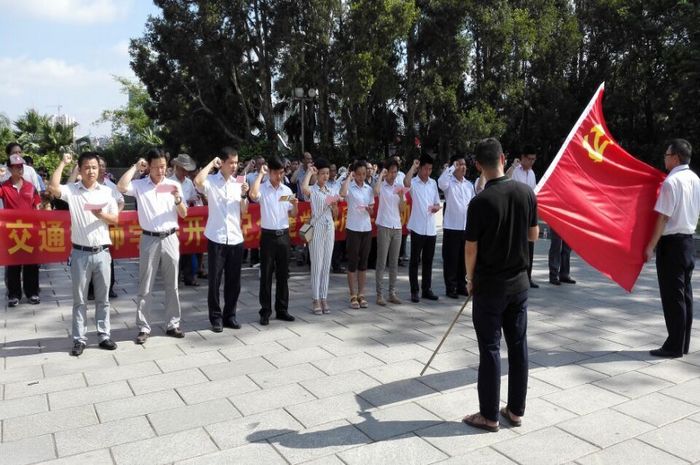 在鮮紅的黨旗下,全體黨員舉起右手,與新發展的預備黨員(yuán)一同莊嚴宣誓(shì),活動嚴肅(sù)認真,激人奮進。