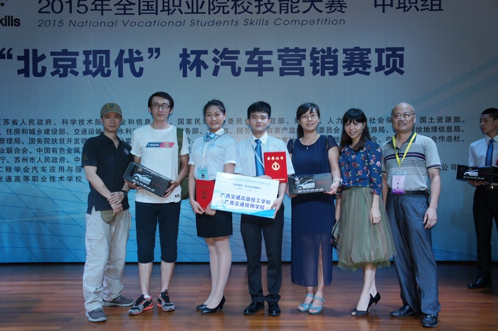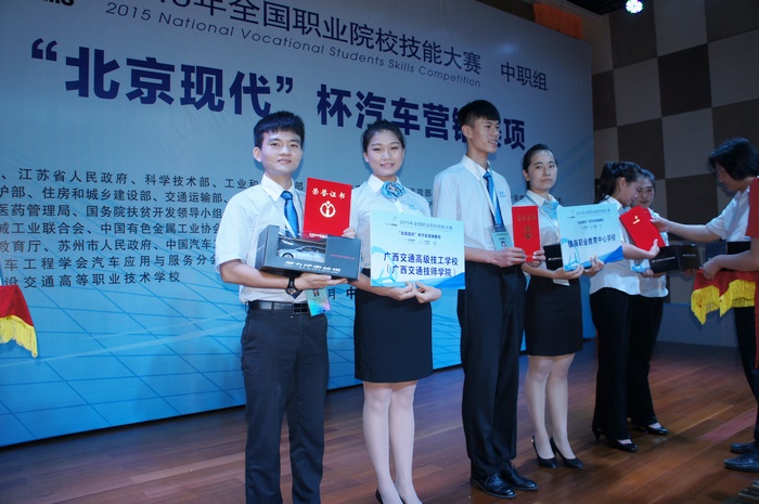 2015全國職業院校技能大賽(中職組)“北京現代”杯汽車(chē)營銷賽項(xiàng)於612-14日(rì)在(zài)江蘇省蘇州市舉行,我校選手(shǒu)楊思琦、胡景怡經過激烈拚搏,榮獲全國二等獎,為學院爭(zhēng)得榮譽,為廣西(xī)爭了光。
