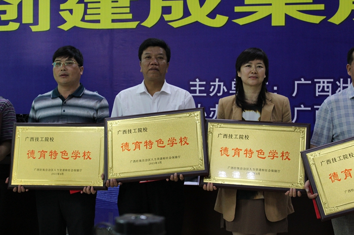 4月28日,廣西技工院校“德育特色學校”創建成(chéng)果展示交流活動在廣(guǎng)西經貿高級技工學校舉行,活動由區人力資源和社會保障廳主辦,由為獲得“德育特色學(xué)校”的11所技工院校進(jìn)行頒獎、“德育特色學校”創建成果(guǒ)現場展(zhǎn)示、創建“德育特色學校”典型(xíng)案例介紹、德(dé)育課課改(gǎi)示範課及觀摩學生管理工作和校園文化活動等(děng)五(wǔ)個內容組成。我院鍾修仁院長、信息與商務係謝(xiè)毅鬆副主(zhǔ)任、學(xué)生工作處梁勇副主任、院團委李薑春書記及相關德育教師出(chū)席參加。
