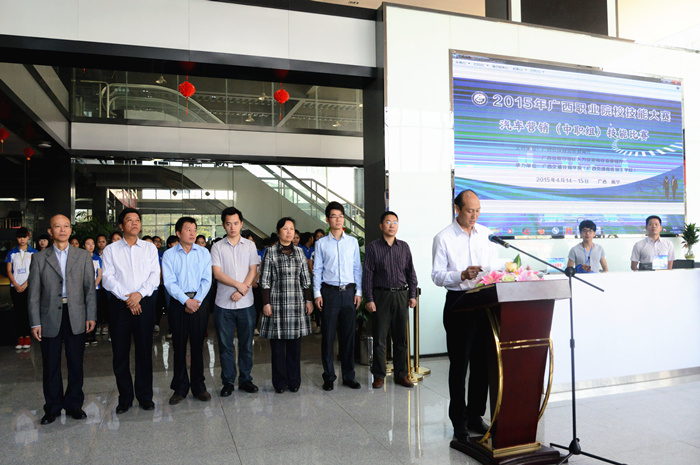 4月14至15日,2015年廣西職業院(yuàn)校技能大賽(sài)“汽車營銷”(中職組)比賽在我院德能樓汽車4S實景基地順利舉行。自治區教育(yù)廳職成處主任、2015年廣西職業院校技能大賽(sài)執委會秘書李春鵬,精品欧美一区二区在线看片職業技術學院教授(shòu)、大賽副總(zǒng)裁判長彭(péng)朝暉,南寧市第四職業技術學校(xiào)副校長、大賽(sài)副總裁判長淩小冰,我院院長鍾修仁,黨委書記羅華,副院長關菲明等出席了開幕(mù)式。