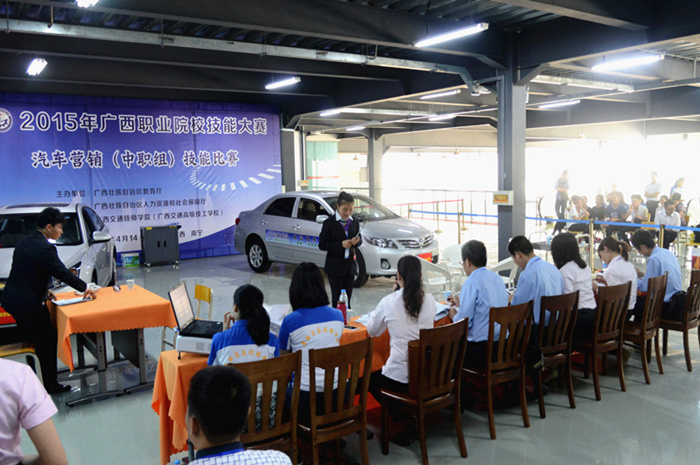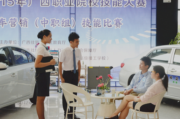 此次汽車營(yíng)銷技(jì)能賽項共設(shè)置“汽車營銷基(jī)本流程操作和理論知(zhī)識測試”、“整車銷(xiāo)售綜合技能”、“汽車維(wéi)修(xiū)服務接待綜合技能”等三個賽項。全區共24支隊伍參加(jiā)了此次比賽。