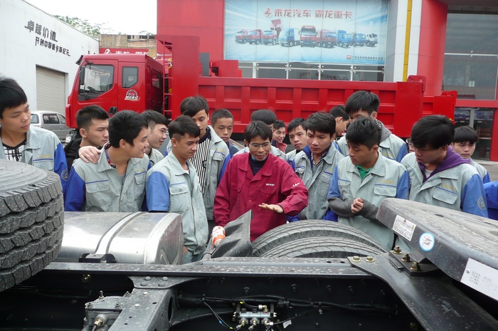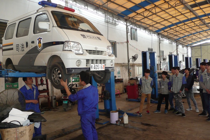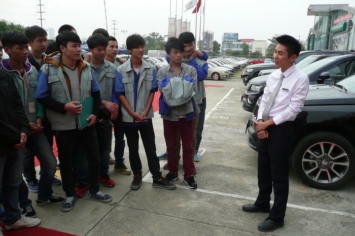 學生現場聆(líng)聽企業技術能手講(jiǎng)解