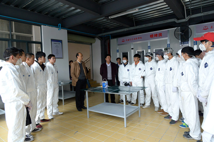 鍾修仁院長和關菲(fēi)明副院長到汽車塗裝技術項目現場鼓勵同學(xué)們認真(zhēn)比賽(sài)