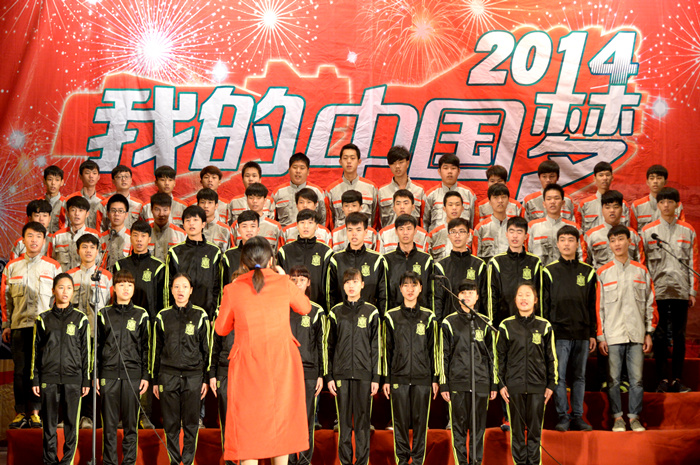 2013級裝飾2班與2013級酒店管理合班演唱曲目《共青團之歌(gē)》