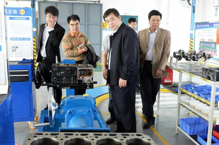 在柳工路創合作的柴油發(fā)動機生產和維修綜合實訓項目(mù)區(qū)域詳細詢問了實訓過程,樊海林(lín)係主(zhǔ)任進行了細致的演示講解(jiě)。葉斌書(shū)記一行(háng)人和我院領導熱烈(liè)討論,他們一致認為我(wǒ)院柴油(yóu)發動機實訓項目組織機構明晰,各環(huán)節區域任務明確,針對性強,使學生(shēng)學習更直觀、實踐更充(chōng)分。