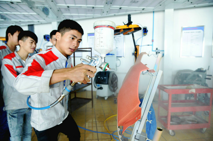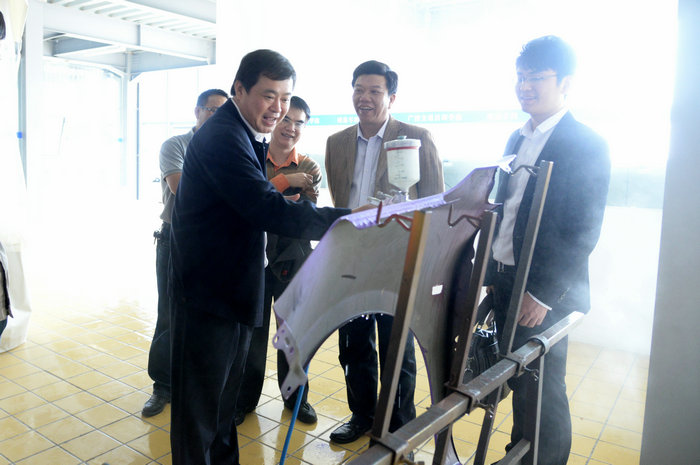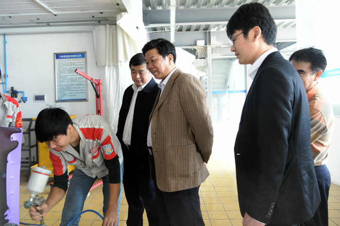 一行人來到鈑噴車(chē)間,葉斌書(shū)記看到學(xué)生們正進行噴塗訓練,饒有興致的(de)拿起噴漆工具進行了現場指(zhǐ)導。