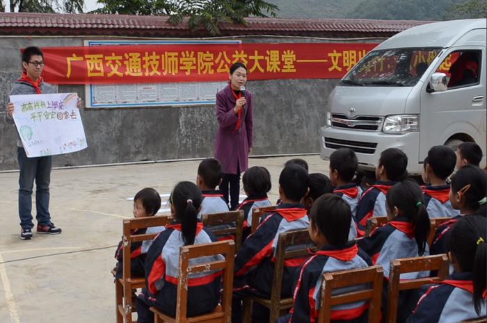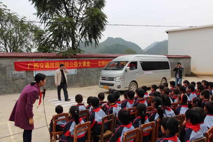 為山區小學(xué)生樹立安全出(chū)行、文明交通意識,增強遵守交通規則的自覺性,11月14日,我院黨委書記羅華帶領安全節能文明駕駛公益特色項目講師團一行6人,赴那坡縣龍合鄉明浪村明浪小學開展“文明出行,從小做起”公益宣傳大課堂活動。