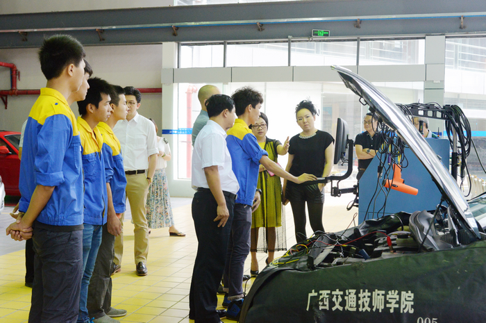 10月30日下午(wǔ),廣西(xī)三原高新科技有限公司商界代表、南(nán)寧市機動車維修行業協會(huì)一(yī)行10人到(dào)我院開展調研交流(liú)活動。我院副院(yuàn)長關菲(fēi)明與汽車係(xì)主任樊海林熱(rè)情接待了一行人。