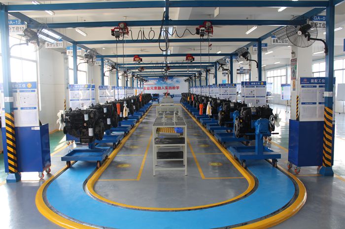 在該基地建設之初,我院領(lǐng)導與柳工路創負責人進行多次的深入交流並達成共識,確(què)定建設規(guī)模為同時容納50名學生進行(háng)實訓。依托綜合實訓基(jī)地,集成發動機企業現場元素,創建情景式實訓教學平台;依托綜(zōng)合實訓基地,提煉(liàn)發動機企業先進製造管理知識,開發職業素養與專業技能相統一的精益課程;依托綜合實(shí)訓基地,創建一體化實訓教學流程,把企業元素融入到實(shí)訓過(guò)程的教學體(tǐ)係。為最(zuì)大化把企業元素融入實踐教學,實行標準化工位,精益化管理式教學,教學團隊和路創團隊(duì)共(gòng)同開發了校企合作項目資(zī)料文件(jiàn)、綜合實訓車間應用手冊、發動機工作任務(wù)頁、標準(zhǔn)化操作(SOD)等教學資料(liào)。