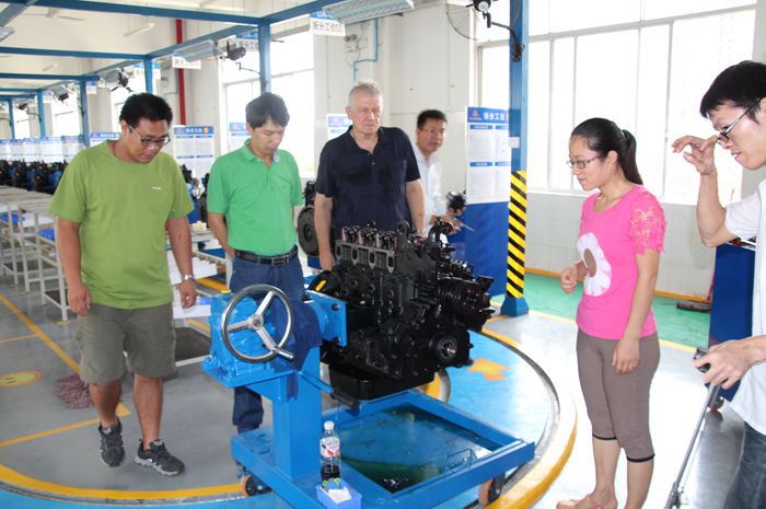 綜合實訓基(jī)地開發遵循軟、硬件並行建設,從場地建設開始,以汽車工程係專業教師組成的教學團隊也成立了。教學團隊在跟進硬件建設進度的同時,與(yǔ)路創駐點工作人(rén)員密切配合,對融入企業元素,精益化管(guǎn)理的教學工作展開研發。教學團隊和(hé)路創(chuàng)團隊共同開發了校(xiào)企合(hé)作項目資料文件、綜合實訓車間應用手冊、發動機工作(zuò)任(rèn)務頁、標準化操作(SOD)等教學資料。硬件基礎建設也按計劃順(shùn)利進行,時值該院承辦的“2014年汽車職(zhí)業教育專業內涵建設交流會(huì)”期間,整條發(fā)動機綜合實訓流水線硬件進場完畢(bì),以嶄新麵貌展現給(gěi)全國汽車職(zhí)業教育(yù)同行,成為該院向外展示和交流新的窗口(kǒu)。