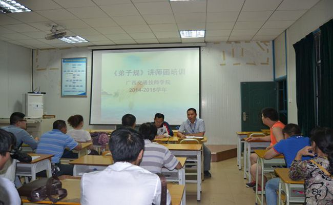 10月14日,我院組織新一期的《弟子規》講師團全體成員進行培訓學習,同時拉開了2014級新生《弟子規》教育的序幕。培訓期間(jiān),學生工作處梁源主任和梁勇副主任傳達了學院領導(dǎo)對提高2014級(jí)學生綜(zōng)合素質的殷切希望,同時,在《弟子規》教育的授課內容和授課方式上(shàng)進行了全麵交流並提出要求。本學期有多位老師加入到《弟子規》講師團的大家庭當中,使講師團的隊伍不斷壯大,各位成員表示將竭盡所能在(zài)學生文明禮儀教育(yù)當中做(zuò)出自己的一份貢獻。