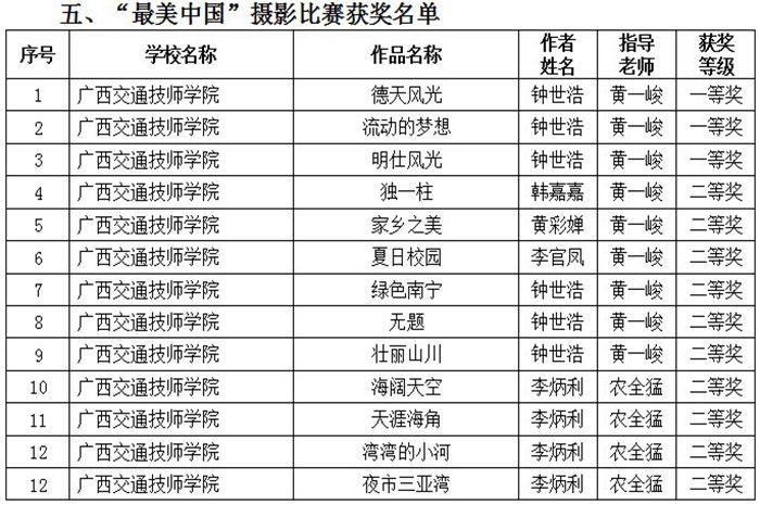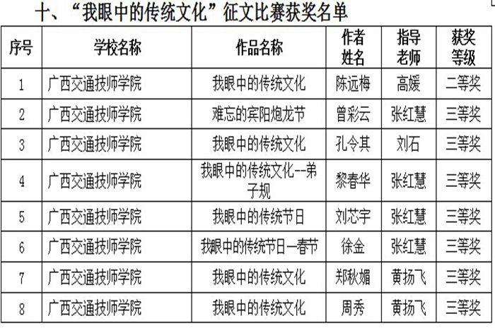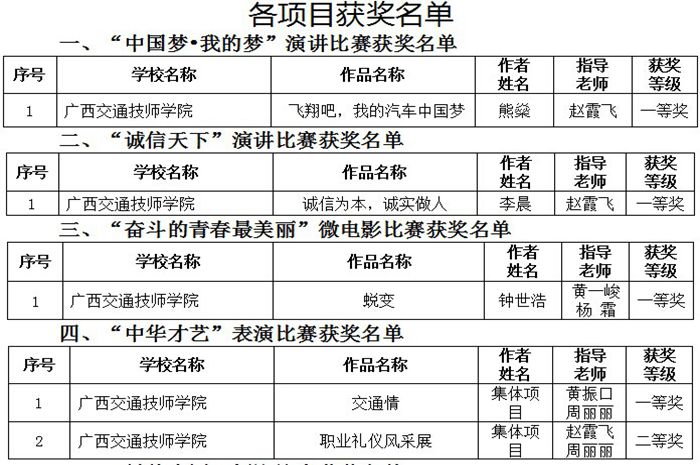 由(yóu)自治區教育廳、自治區團委、自治區(qū)婦聯、自治區關工委、中華(huá)職業教育社廣西分社主辦,廣西中等職業教育教學改革(gé)指導中心、廣西機電工程學校、廣西八桂職教網承辦的第十一屆全區中等職(zhí)業學校“文(wén)明風采”競賽活動已圓滿結束,我院師生在此次活動中(zhōng)成績斐然。