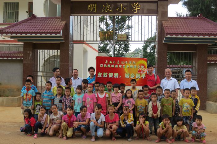 那(nà)坡縣委常委、副縣(xiàn)長覃彤,教育局長(zhǎng)隆海英、明浪(làng)村書記(jì)韋紅(hóng)亮等熱情接見了支教一行,他們對城鄉兩校攜手、支援貧困山區教育表示熱烈歡迎並寄予厚望(wàng)。
