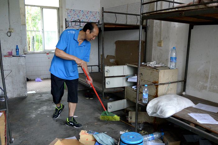學院鄭超文院長助理清(qīng)掃2棟學(xué)生宿舍