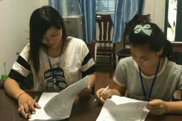 頂崗實習學生認真(zhēn)填寫問卷調查表