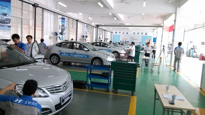 65,我院應北京現代總公司要求邀請廣西鑫廣達、廣西通源、南寧(níng)全越34S店代表來校進行北(běi)京現代(dài)全國統一考核。北京現代總公司代表李翔女(nǚ)士主持考核工作,常州技師學院吳(wú)文龍老師參與指(zhǐ)導工作。我院2013級(jí)北京現代班同學以優異的成績完成了考核,順(shùn)利拿到北京現代公(gōng)司頒發的預備初級技師證書。