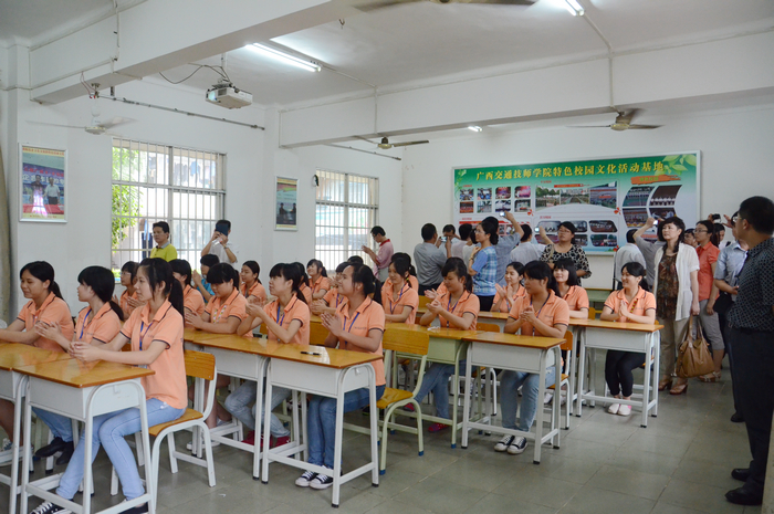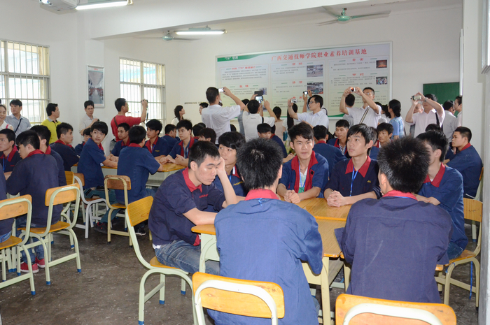 5月29日上午,由(yóu)自治區人力資源和社會保障廳牽(qiān)頭,技工教研室主任李博,副主任陳(chén)家和,副調研員曾文,以及全(quán)區26所技工院校的副校長、負責學生(shēng)工作的教師近50人到我院就“德育特色學校” 創建工作開展觀摩交流活動。我院陸天雲副院長、譚勁濤院長助(zhù)理、鄭超文院長助理以及多(duō)部門相關負責人等熱情接(jiē)待了一行人。