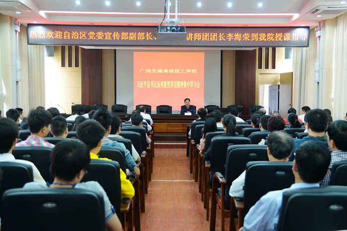 5月6日(rì)下午,我校在信息中心四樓會議室召開習近平總書記係列(liè)重要講話精神集中學習會,深入學(xué)習習近平總書記係列重(chóng)要講話精神。此次集中學習(xí)會由自治區黨委宣傳部副部長、自治區講師團團長李海榮擔任主講,我校中層以上全體領導幹部,各係部、行政部門全體黨員和入(rù)黨積極分子100多人參加(jiā)。學習會由我校黨委書記羅華(huá)主持。
