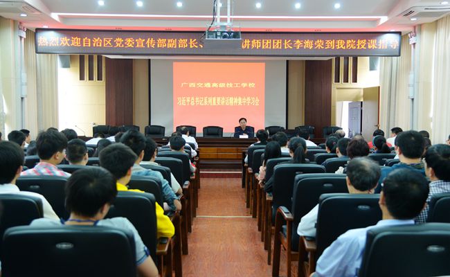 5月6日下午,我校在信息中心四樓會議室召開習近(jìn)平總書記係(xì)列重要講(jiǎng)話精神集中學習會(huì),深入學習習近平總書(shū)記係列(liè)重(chóng)要講話精神。此次集中學習會由(yóu)自(zì)治區黨委(wěi)宣傳部副部長、自治區講師團團長(zhǎng)李海榮擔任主講,我校中層以(yǐ)上全(quán)體領(lǐng)導幹部,各係部、行政部門全體黨(dǎng)員(yuán)和入黨積極分子100多人參加。學習會由我校(xiào)黨委書記羅華主持。
