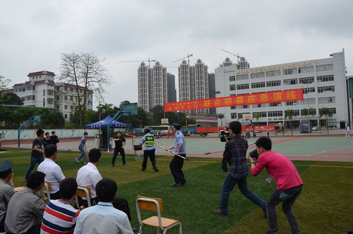 為預防校園(yuán)暴力事件的發生,提高師生(shēng)防暴意識和抗暴能力,我院與巡警支隊六(liù)大隊望州警務(wù)站於(yú)4月16日下午在校園內進行(háng)了一次校園防暴應急演練活動。